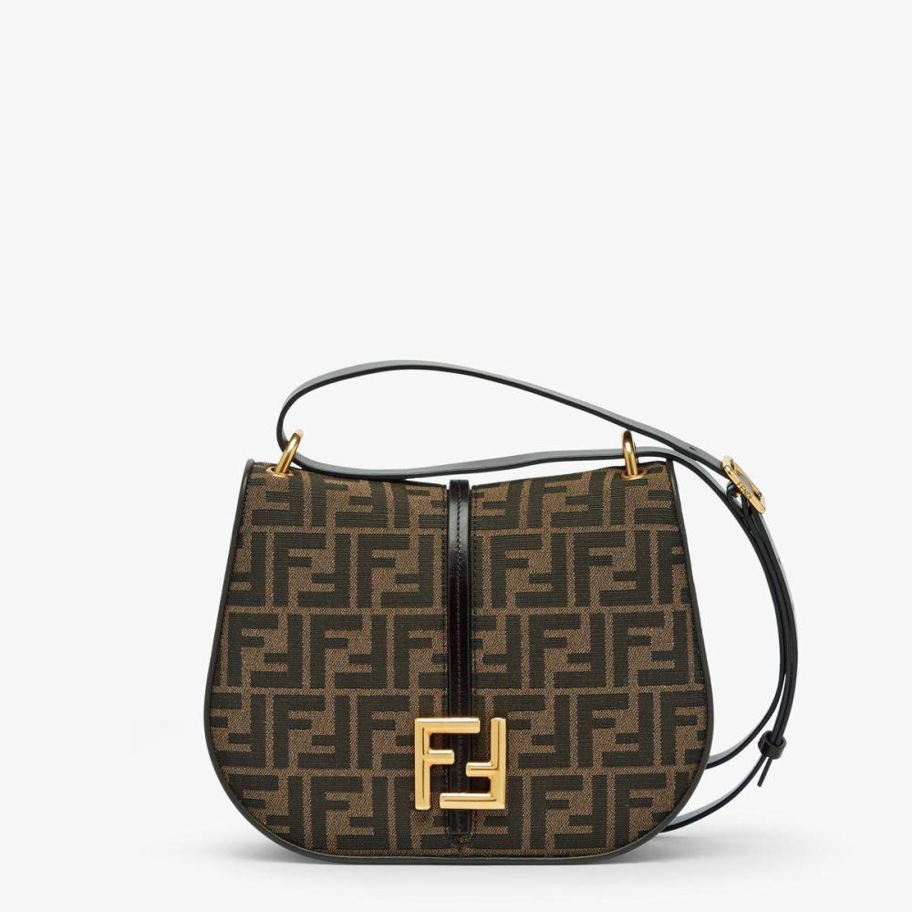 أناقة نصف-قمر بتوقيع فندي. تأتي الحقيبة بنقشة FF الجاكار الكلاسيكية مع تشطيبات جلدية وحلية أمامية بحرف F ذهبي يلفت من أول نظرة. حجمها الصغير عملي لطلّات اليوم وحتى المساء